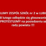 26 lutego 2019r. – przed rozpoczęciem lekcji – nauczyciele spotkali się z mediami aby poinformować o planach włączenia w struktury naszej szkoły III LO w Lubinie. Taka decyzja ma zapaść na najbliższej sesji Rady Powiatu w czwartek 28 lutego . Nie zgadzamy się z tym!