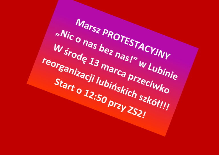 Lubin, dnia 08.04.2019r. SZANOWNI PAŃSTWO, DRODZY RODZICE I UCZNIOWIE W Zespole Szkół Nr 2 im. Jana Wyżykowskiego w Lubinie od dnia 8 kwietnia 2019r. trwa akcja strajkowa. O wszelkich zmianach Dyrektor Szkoły będzie informował nauczycieli, rodziców i uczniów poprzez ogłoszenia zamieszczane…
