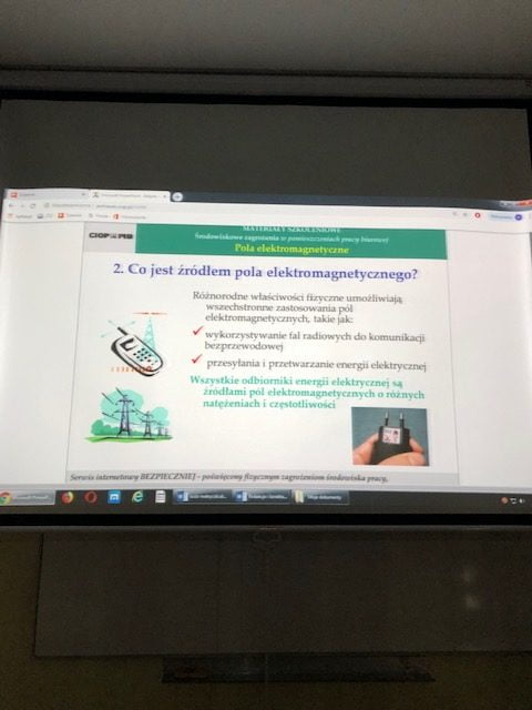 - w wybranych klasach odbyła się prelekcja na temat: Pole elektromagnetyczne – sposoby ograniczania osobistej ekspozycji, przygotowana i wygłoszona przez p. Justynę Budzanowską – organizatora i koordynatora projektu,
