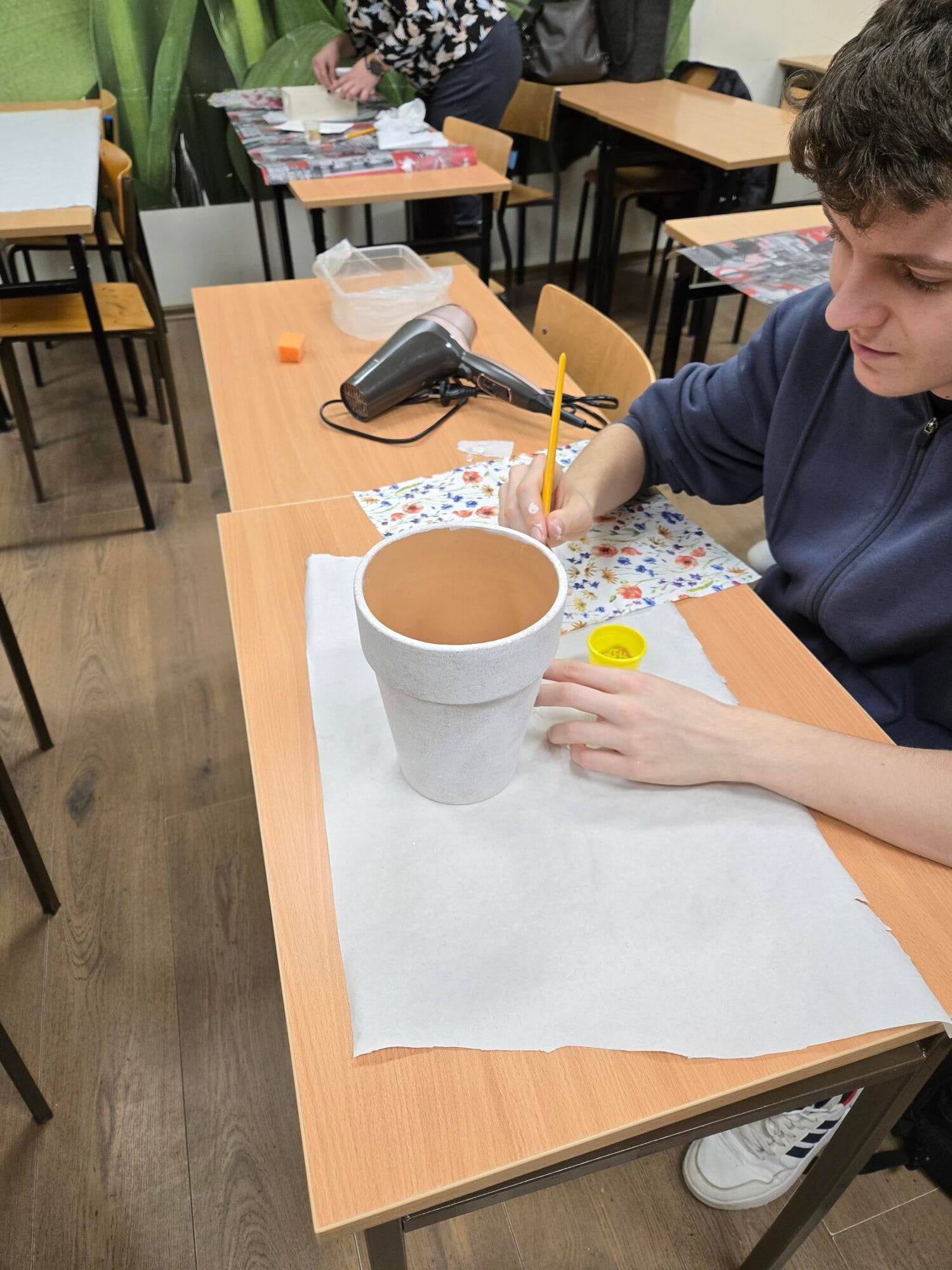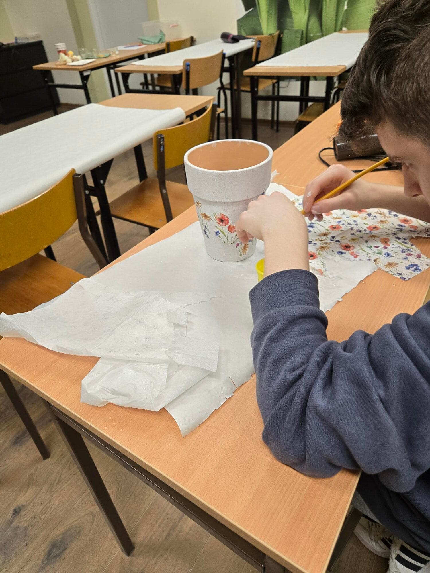 W nowym roku szkolnym dołączyły do nas nowe mamy Naszych uczniów, ale i także sami uczniowie zainteresowali się techniką i również dołączyli na Nasze warsztaty. Na pierwszych zajęciach, które odbyły się 30.10.2025 (czwartek) przypominaliśmy sobie zdobienie doniczek i drewnianych skrzyneczek:-)