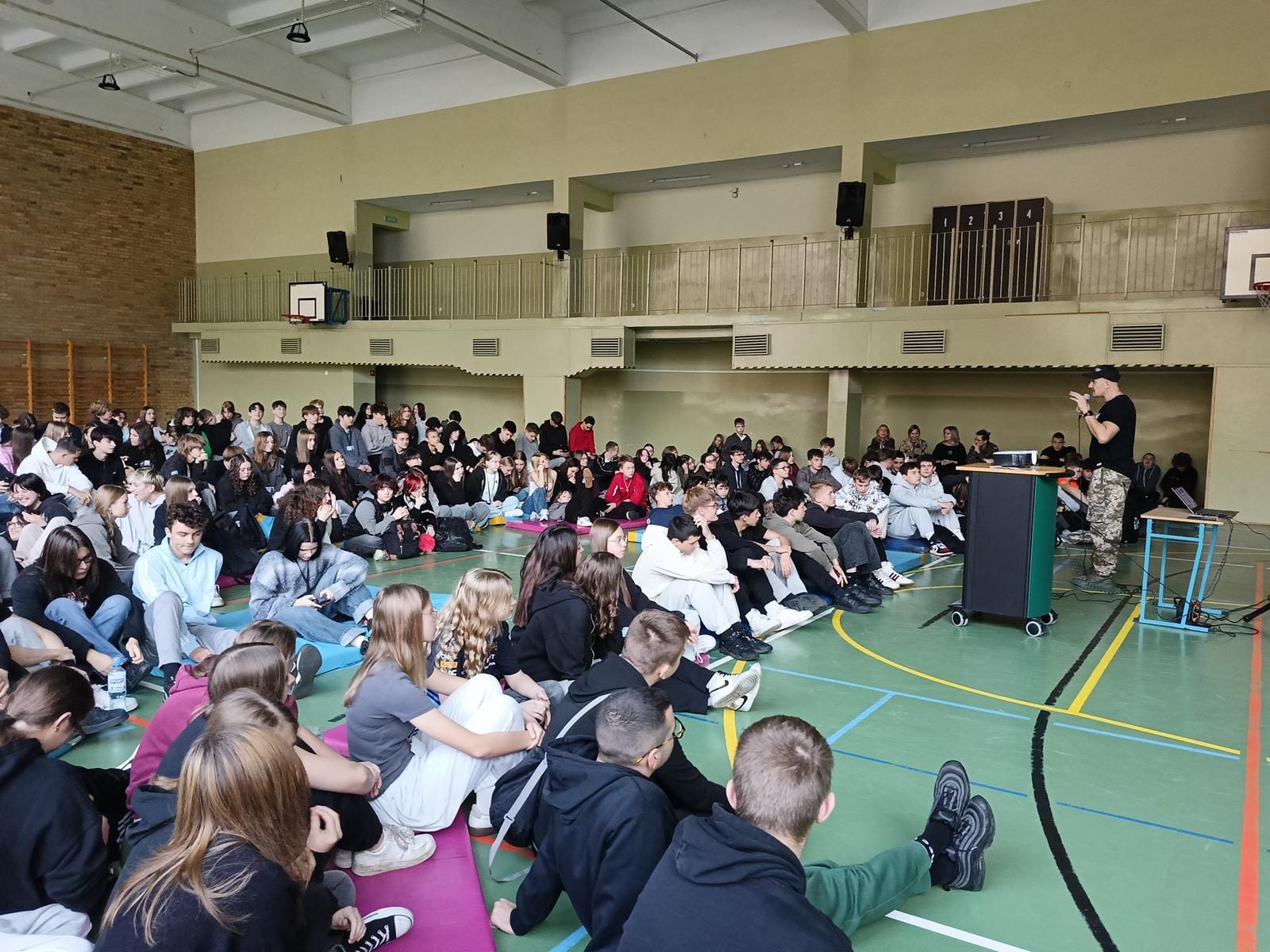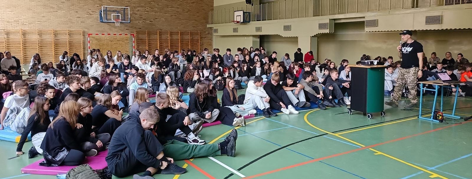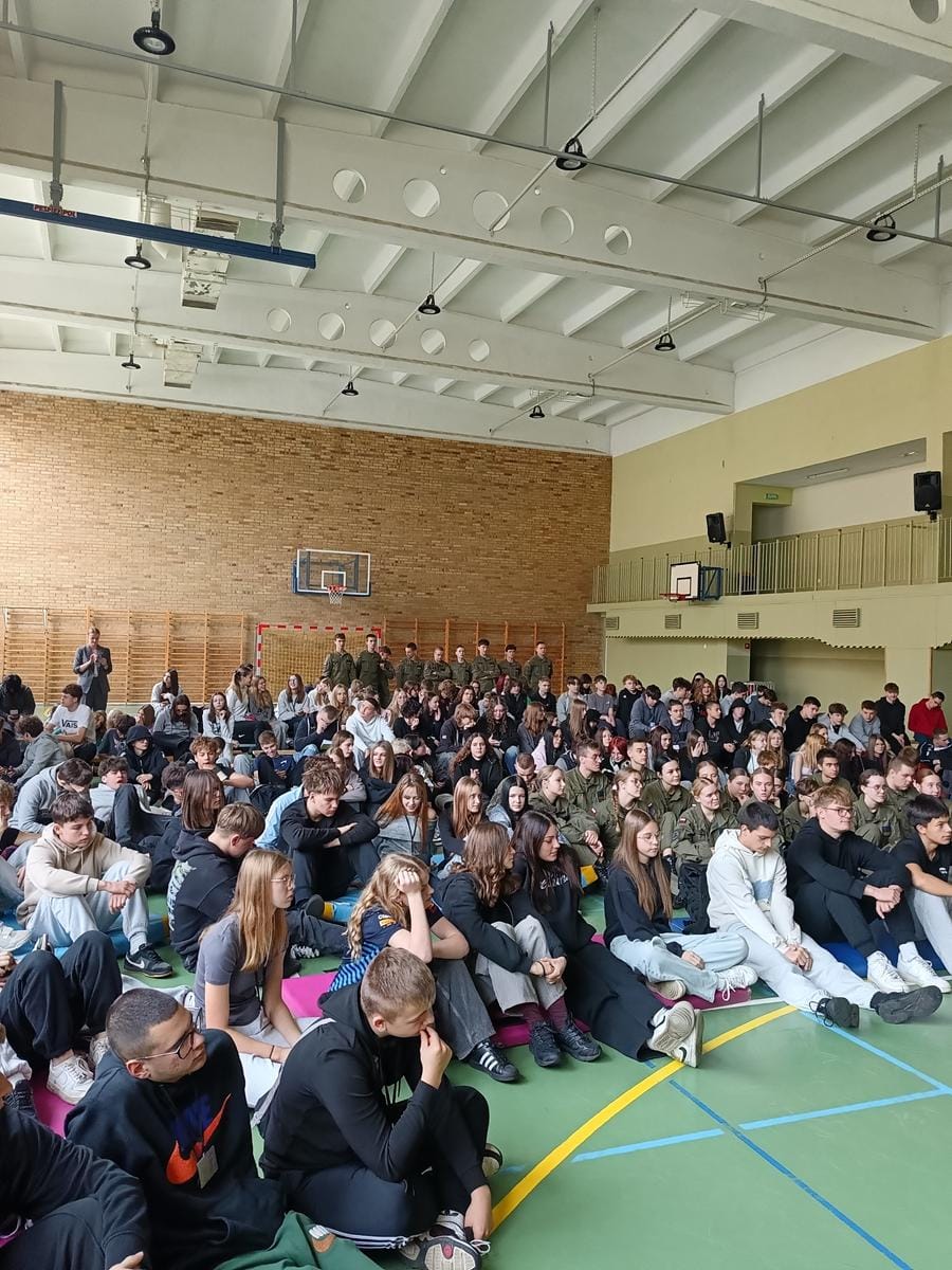 Młodzież klas pierwszych naszej Szkoły mogła wysłuchać i obejrzeć żywy przekaz twórcy muzycznego a także żołnierza Rzeczypospolitej Polskiej w rytmach RAP i HIP-HOP. Roman Bosski zachęcał młodych ludzi do poszukiwania autorytetów wśród żywych legend wywiadu jak chociażby Gryf. Odradzał młodym słuchaczom zatracanie się w telefonach, rezygnowanie ze wspólnych rozmów i życia na rzecz patostreamerów.