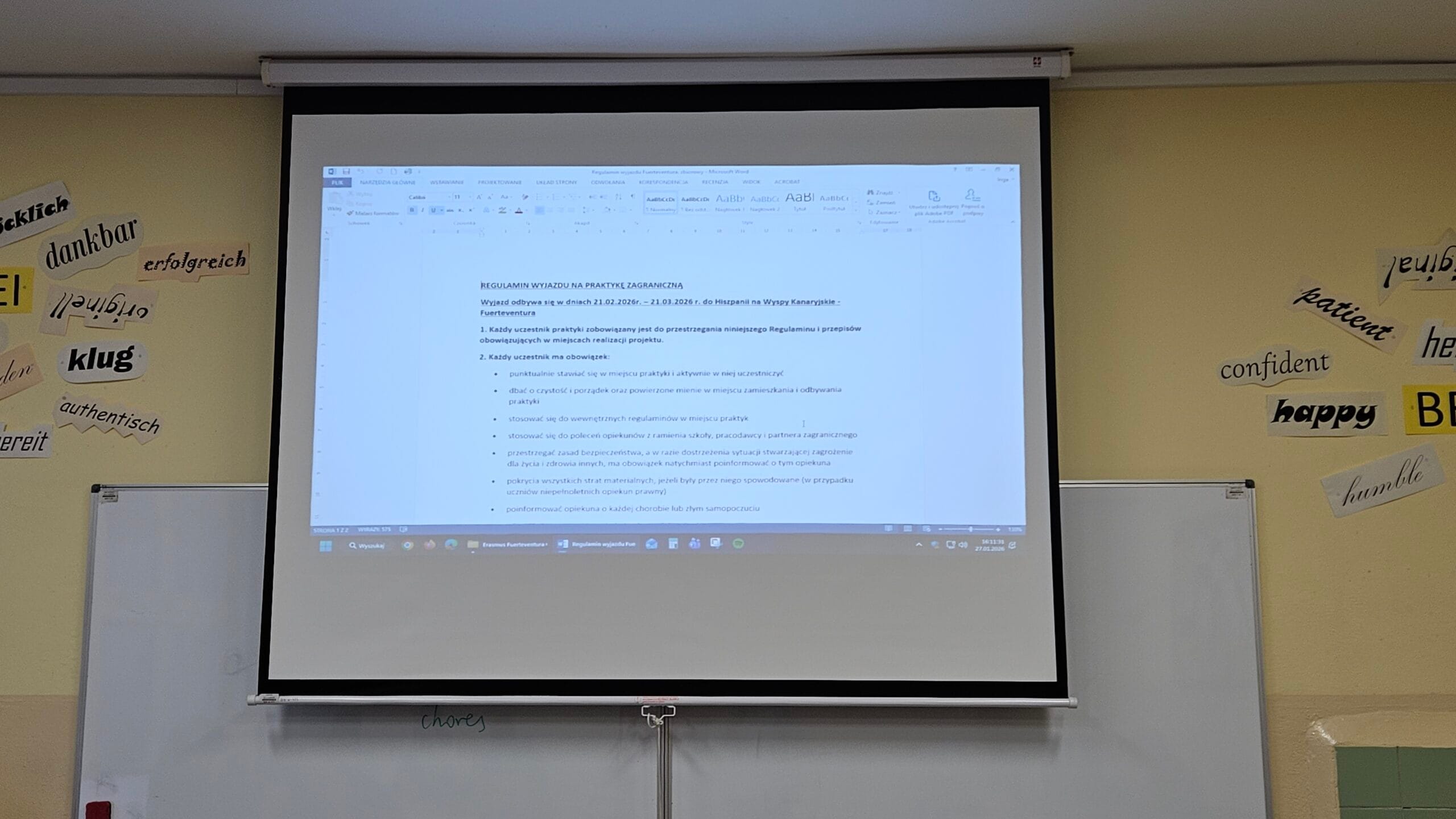 Trwają kolejne zajęcia przygotowujące uczniów Zespołu Szkół Nr 2 w Lubinie do wyjazdu na zagraniczne praktyki zawodowe na Wyspy Kanaryjskie (Fuerteventura) 🌴✈️